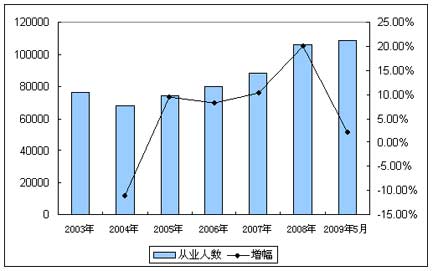 2003-2009年行业企业从业人员发展状况