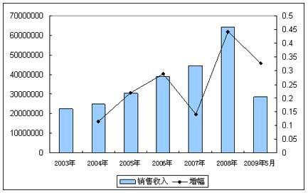 2003-2009年行业销售收入发展状况