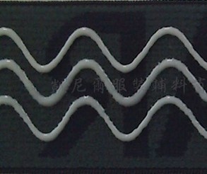 B、滴胶涂层---原料材质为环保硅胶。我司滴胶涂层技术可实现带上点胶覆盖(圆点状、直线形、波浪形、网纹形之涂层);有较强的抗氧化及止滑功能,且能有效地补强弹力带之弹性及拉伸性。适用于:不同材质的织带、织唛、花边、布及成品胸围等。