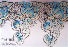 百花花边制品厂创建于1998年,是一家集花边开发、花边生产、花边销售、服务于一体的综合性专业的花边生产企业。公司产品有T/C棉布绣,网布、针织布、柯根纱刺绣花边;纯棉花边、水溶花边、朵花、亮片花边及弹力松紧带花边,蕾丝花边等。适应于各种内衣、时装、玩具、窗帘、婚纱、床上用品等系列产品上。